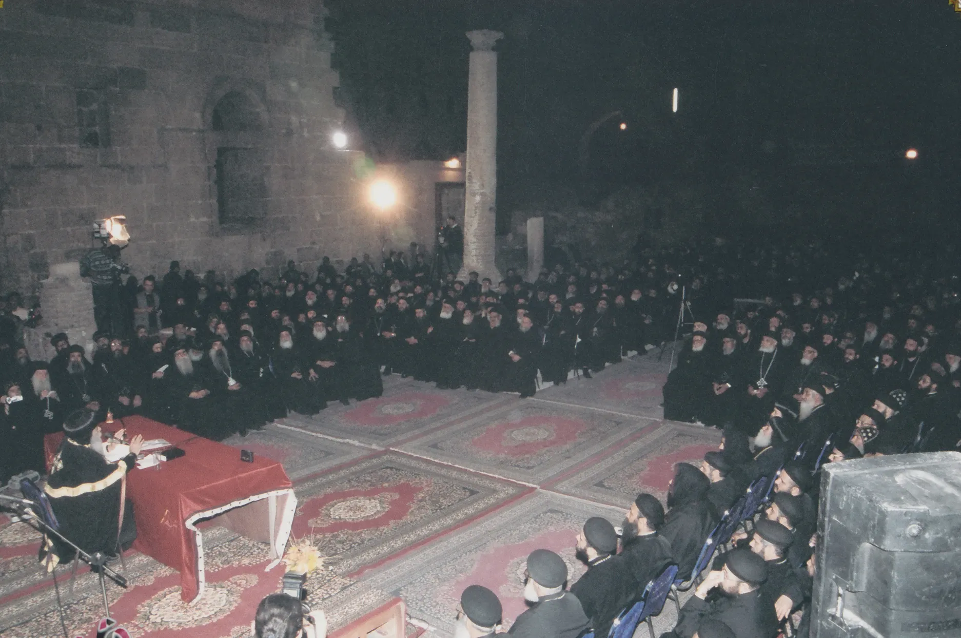 اجتماع قداسة البابا شنوده مع 750 كاهنًا من الصعيد أثناء زيارته التاريخية لسوهاج مارس 2004م