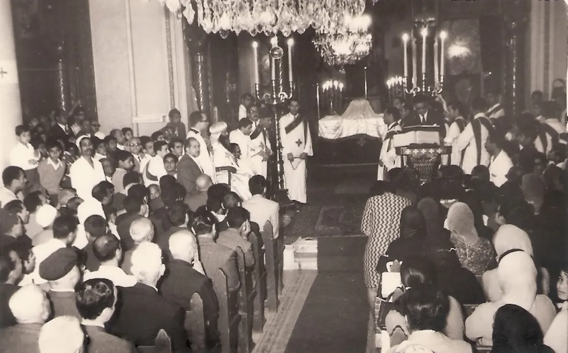 صلاة عشية وعظة في كنيسة الشهيد أبوسفين حدائق القبة في 3 ديسمبر 1974م والقس يوحنا حنا والشعب