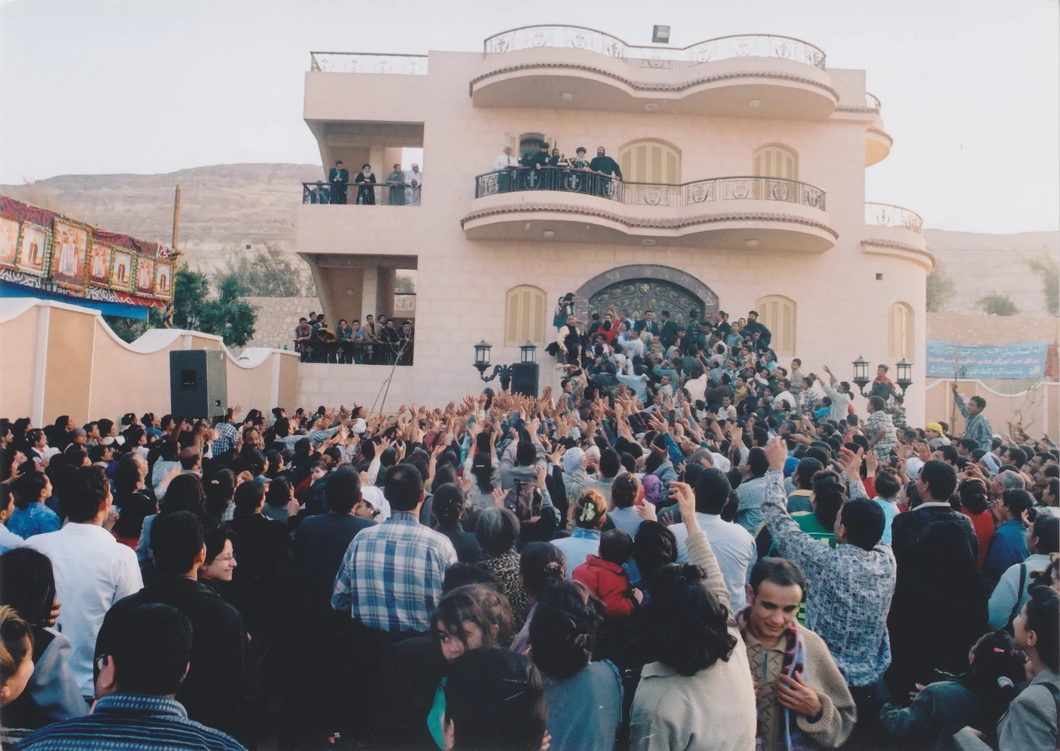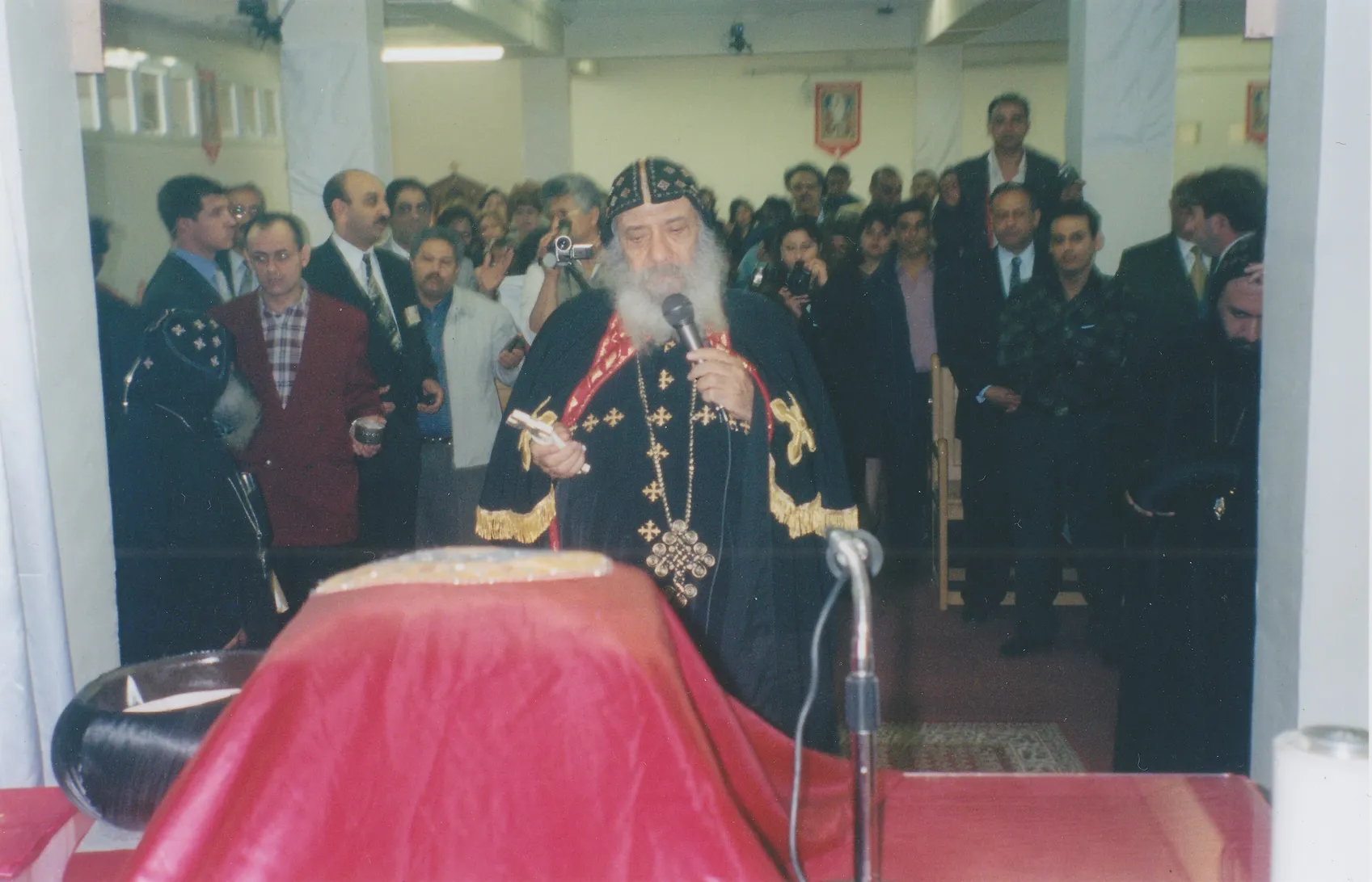 أثناء زيارة قداسة البابا شنوده للمنيا في 25 مايو 1976م لأخذ رأي الشعب لتزكية أسقف للمنيا