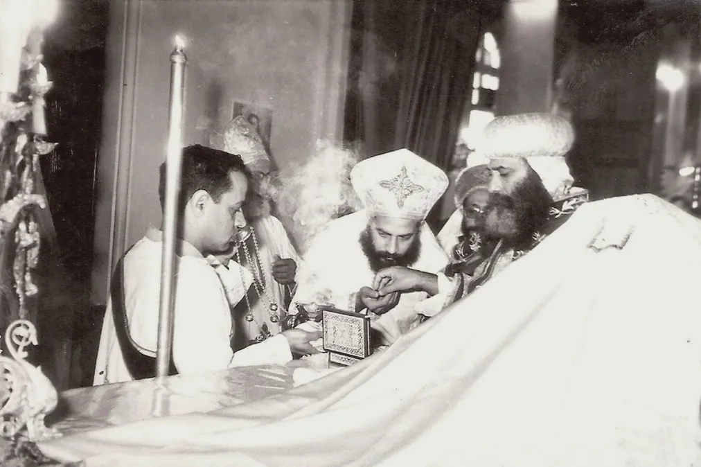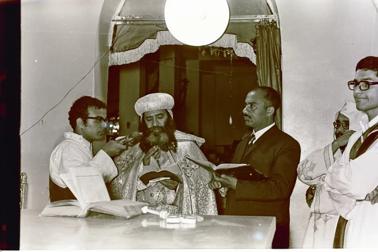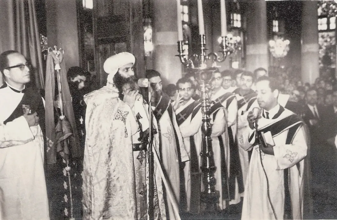 البابا شنوده يصلي القداس الإلهي في كنيسة محرم بك بشبرا في 23 أبريل 1972م