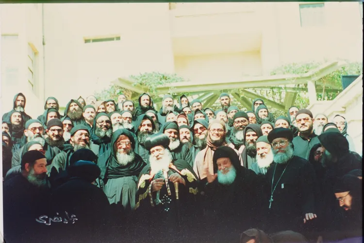 رسامة رهبان لدير الأنبا شنوده رئيس المتوحدين أثناء زيارة البابا شنوده للصعيد في 2004م