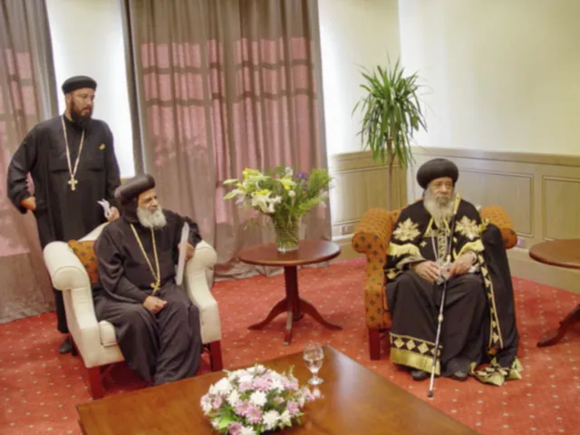 قداسة البابا شنوده الثالث والأنبا ثاؤفيلوس أسقف الغردقة والبحر الأحمر أثناء زيارة البابا في 17 مارس 2006م