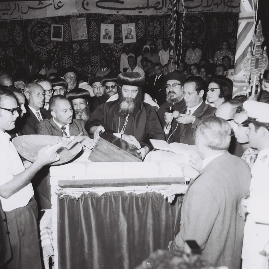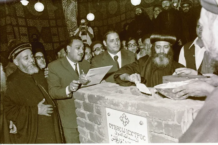حجر أساس كنيسة العذراء مدينة نصر بيد البابا شنوده الثالث في يوليو 1972م